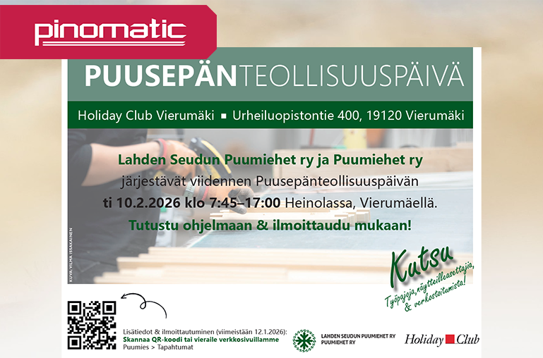Linkki ilmoittautumiseen: https://www.puumies.fi/puusepanteollisuuspaiva-vierumaella-heinolassa-10-2-2026/